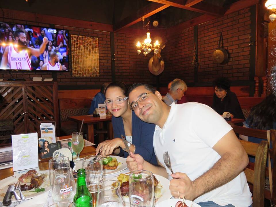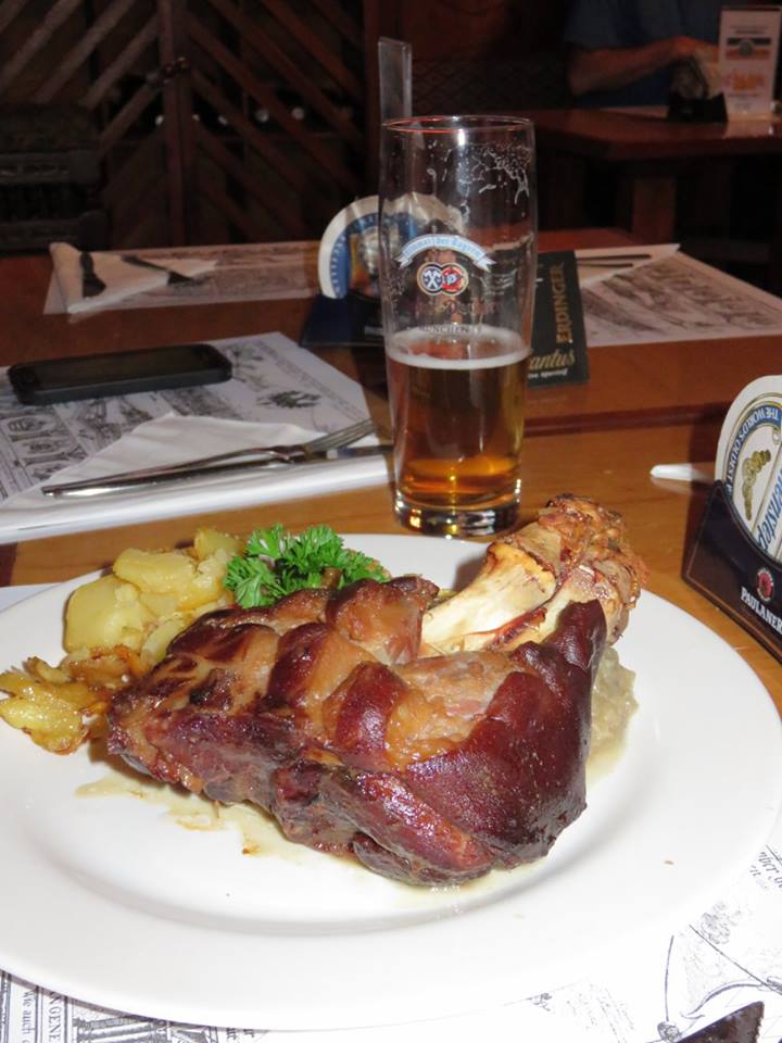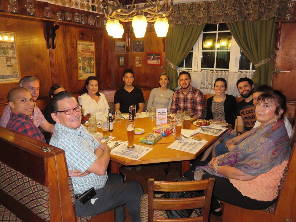 Disfrutando de buena compañia, comida y cerveza en el restaurante Steinbock!